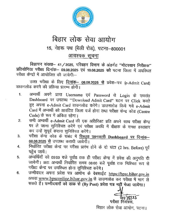How To Check & Download BPSC Motor Vehicle Inspector MVI Admit Card 2025